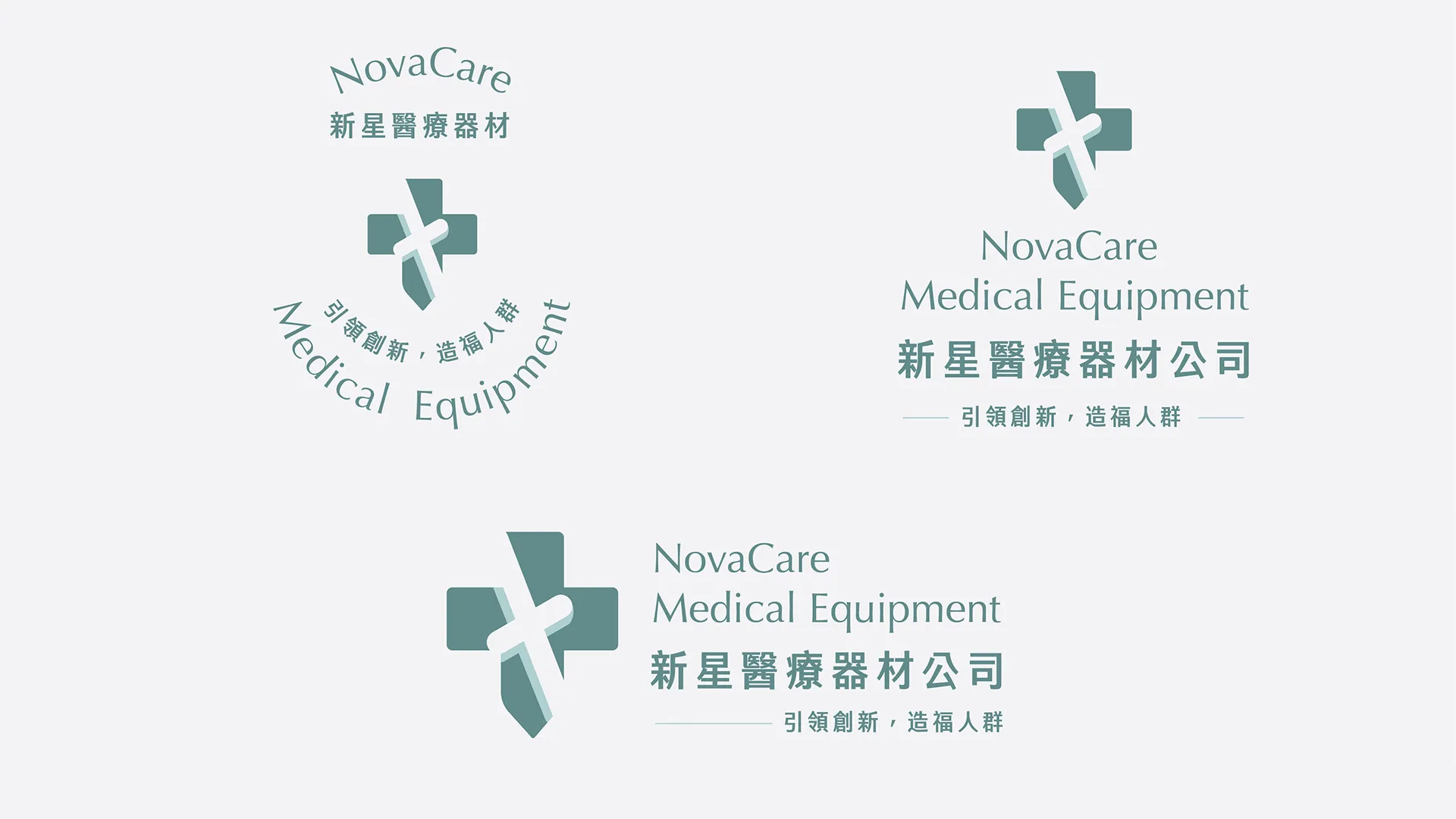 著重於將方向與代表指引方向的指標相融合,以展現公司的專業性和價值觀,首先,選用了現代而簡約的設計風格,強調於幾何圖形和穩重的質感,體現了新星醫療的專業形象。在這套識別系統中使用藍綠色和灰白色,代表著穩健和可靠,同時也呈現出與健康醫療相關的信任感。